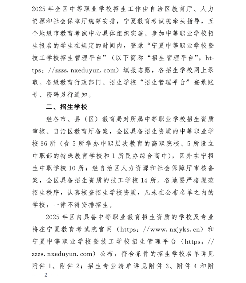 关于做好宁夏2025年全区中等职业学校技工学校招生录取工作的相关事宜通知如下: