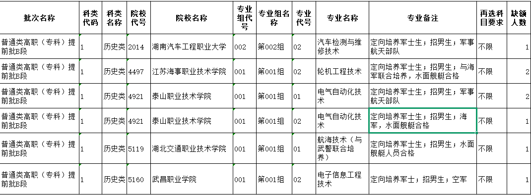 2.2025年普通高校招生普通类高职(专科)提前批B段征集志愿缺额计划(历史类)