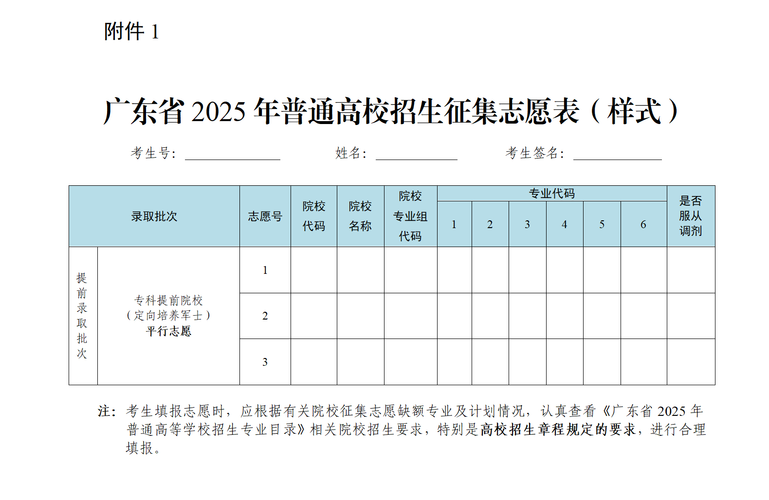1.广东省2025年普通高校招生征集志愿表(样式)