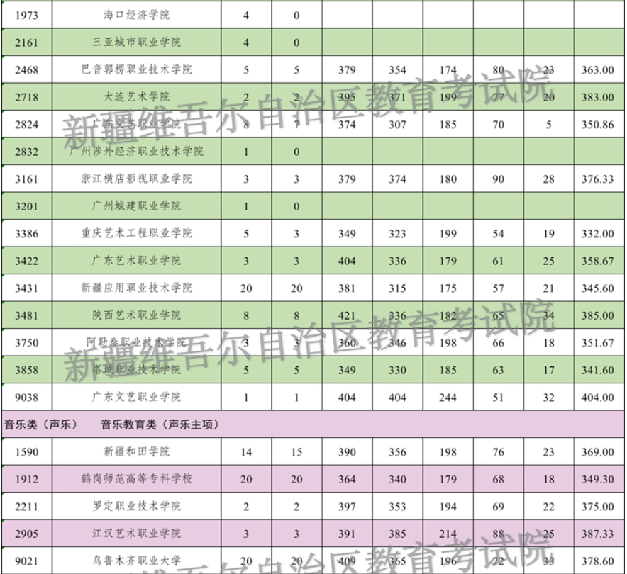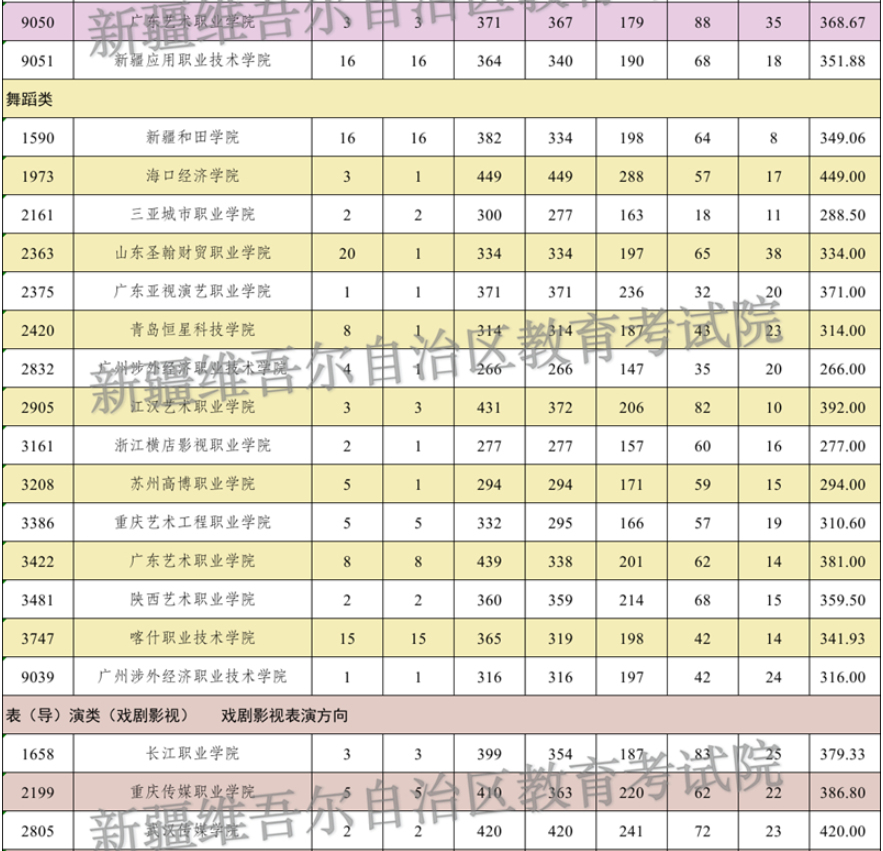 按照录取工作安排,自治区普通高校招生普通类高职(专科)提前批次艺术类院校(专业)投档录取工作于8月14日正式开始,新疆教育考试院根据投档原则向普通类高职(专科)提前批次艺术类在我区招生院校进行了投档,现将相关院校投档情况公布如下: