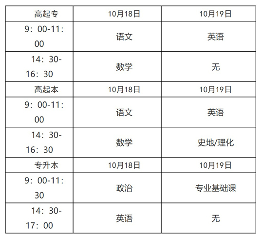 注意:除上述统考科目外,成人高校艺术和体育类专业招生还须进行专业加试。专业加试的考试时间、考试办法等请咨询报考学校(见附件2)。