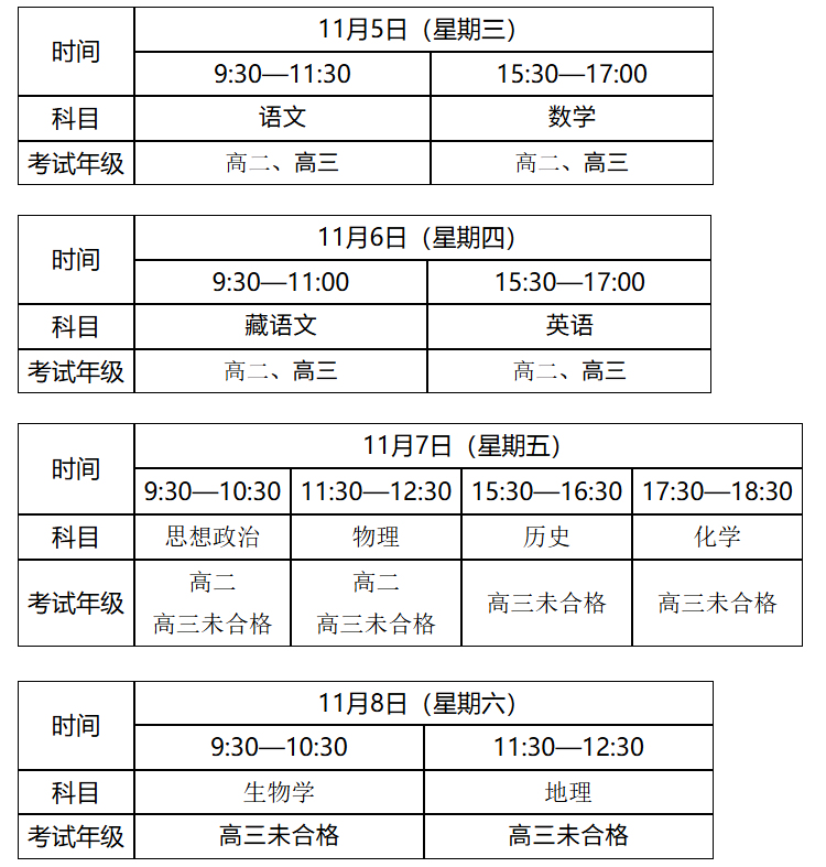 2025年11月西藏自治区高中学考合格性考试报名详情如下: