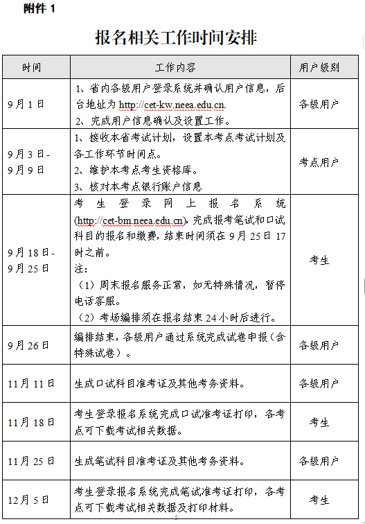 (一)采用全国集中网上报名方式,笔试和口试同时报名,考生登录网上报名系统(http://cet-bm.neea.edu.cn),完成报名和缴费。