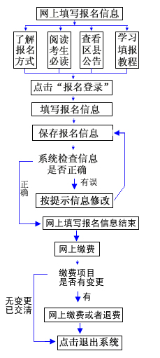 考生报名须完成电子摄像、网上填报报名信息、网上交费、体检等环节。