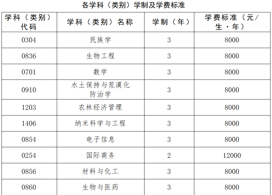 注:各学科(类别)学费标准,最终以上级主管部门批复为准。