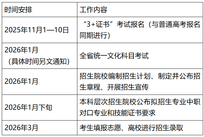 各院校2026年“3+证书”考试招生计划原则上不少于2025年。