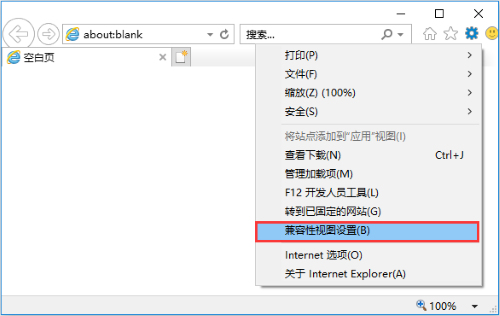 打开IE浏览器,点击“设置”-“兼容性视图设置”,如下图:![]()