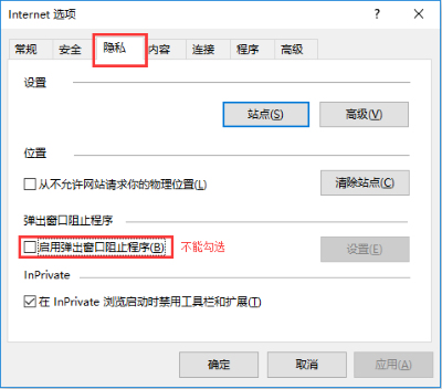 方法二:打开IE浏览器,点击“设置”- “Internet(选项)”-“隐私”,如下图:![]()