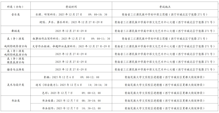 2.音乐类、舞蹈类、播音与主持类、表(导)演类:2025年12月22日至12月29日。
